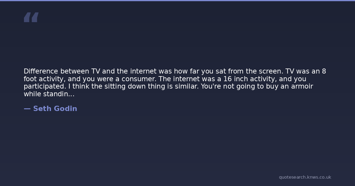 Difference between TV and the internet was how far you sat from the screen. TV was an 8 foot activity, and you were a consumer. The internet was a 16 inch activity, and you participated. I think the sitting down thing is similar. You're not going to buy an armoir while standing on the subway.