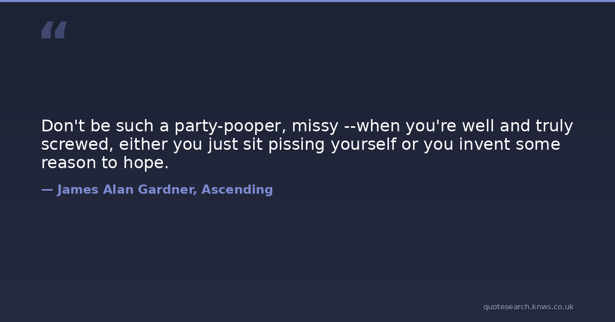 Don't be such a party-pooper, missy --when you're well and truly screwed, either you just sit pissing yourself or you invent some reason to hope.