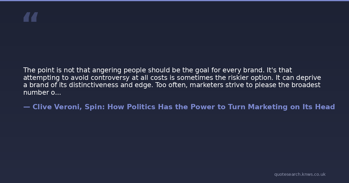 The point is not that angering people should be the goal for every brand. It's that attempting to avoid controversy at all costs is sometimes the riskier option. It can deprive a brand of its distinctiveness and edge. Too often, marketers strive to please the broadest number of people possible. The result can be communications that no one hates. But no one loves either.