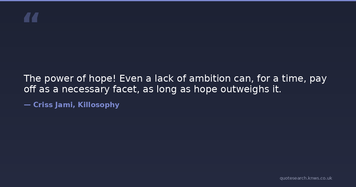 The power of hope! Even a lack of ambition can, for a time, pay off as a necessary facet, as long as hope outweighs it.