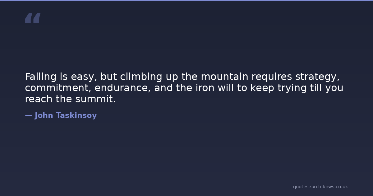 Failing is easy, but climbing up the mountain requires strategy, commitment, endurance, and the iron will to keep trying till you reach the summit.
