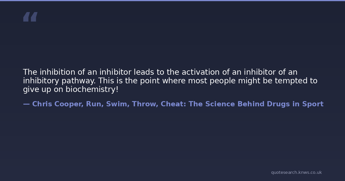 The inhibition of an inhibitor leads to the activation of an inhibitor of an inhibitory pathway. This is the point where most people might be tempted to give up on biochemistry!