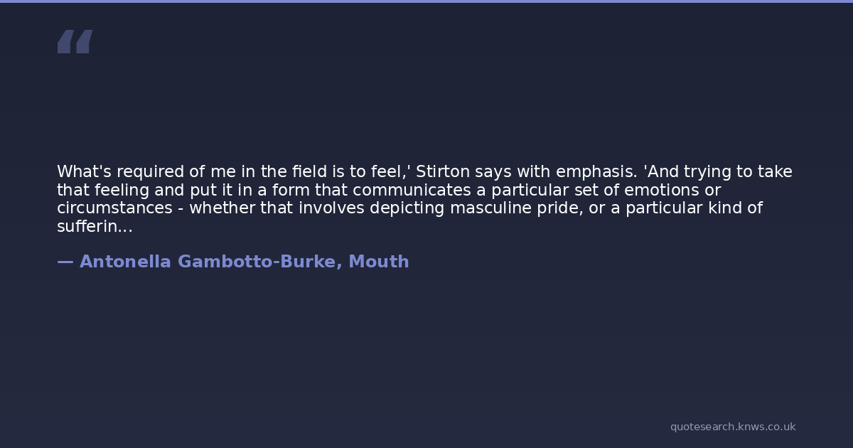 What's required of me in the field is to feel,' Stirton says with emphasis. 'And trying to take that feeling and put it in a form that communicates a particular set of emotions or circumstances - whether that involves depicting masculine pride, or a particular kind of suffering, or love, or closeness - my primary job is to feel and to try to put that feeling into some kind of visual form. My goal is to get to the heart of each story, you know? Im trying to evolve in my work.