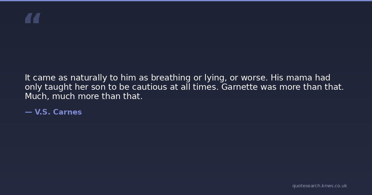 It came as naturally to him as breathing or lying, or worse. His mama had only taught her son to be cautious at all times. Garnette was more than that. Much, much more than that.