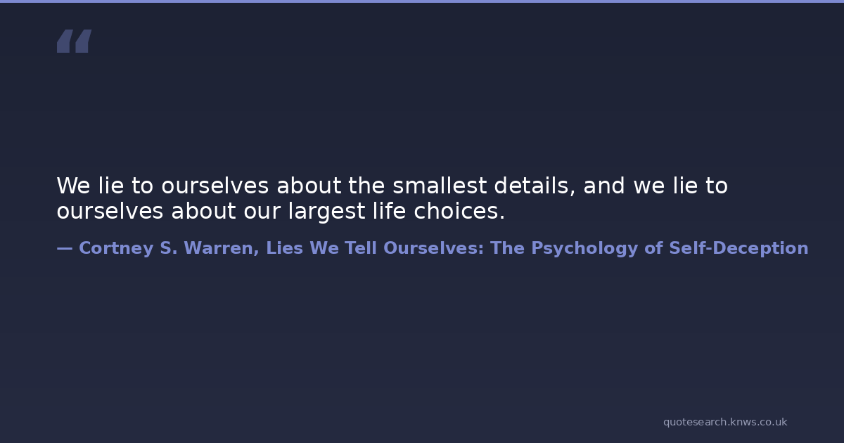 We lie to ourselves about the smallest details, and we lie to ourselves about our largest life choices.
