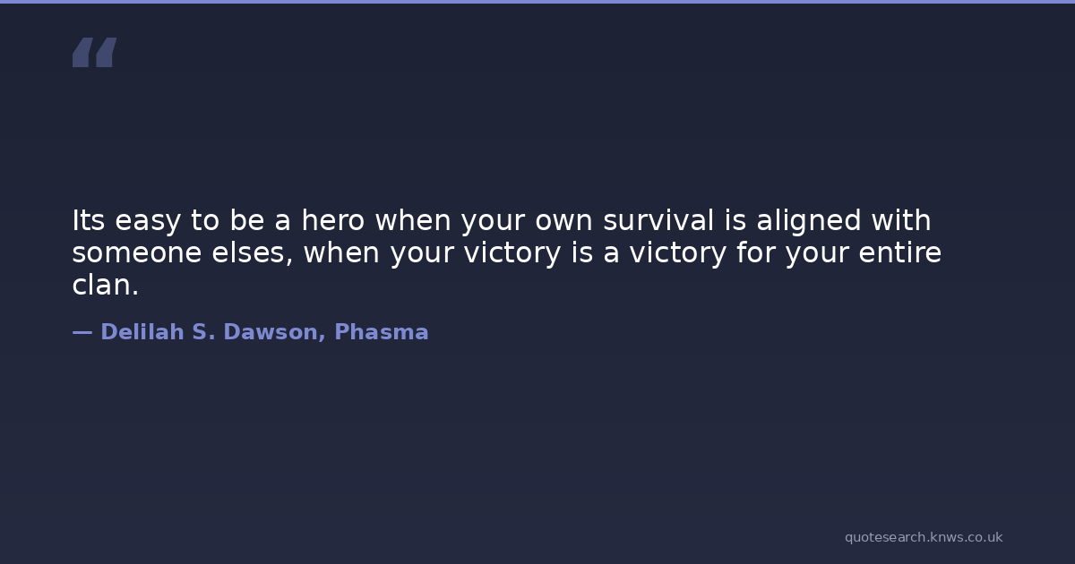 Its easy to be a hero when your own survival is aligned with someone elses, when your victory is a victory for your entire clan.