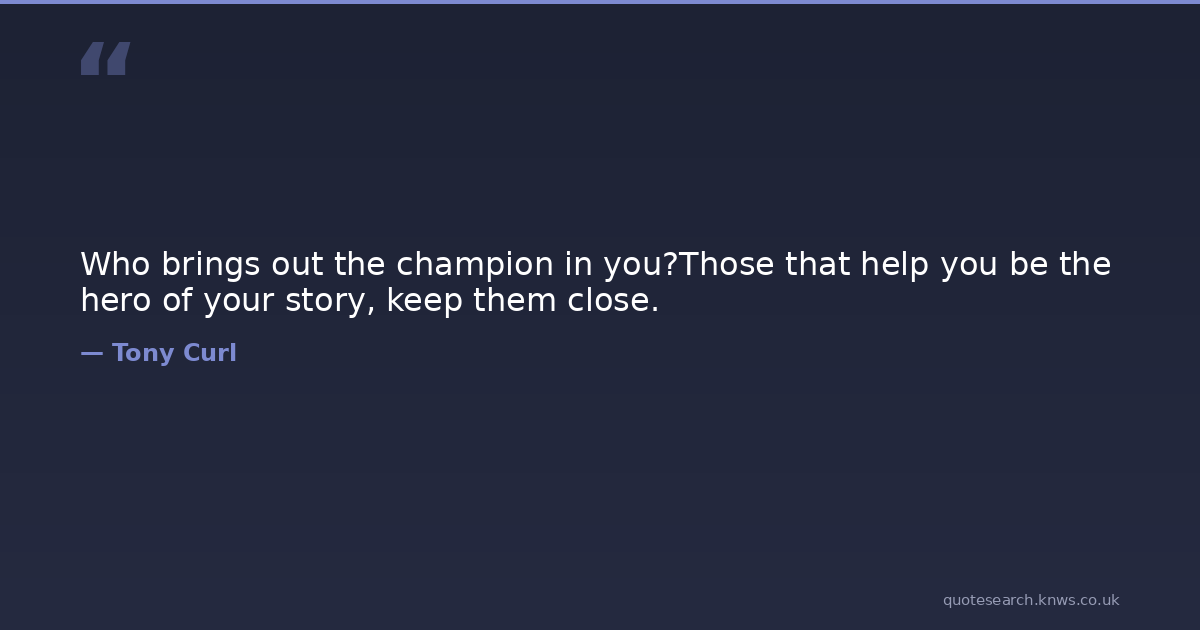Who brings out the champion in you?Those that help you be the hero of your story, keep them close.
