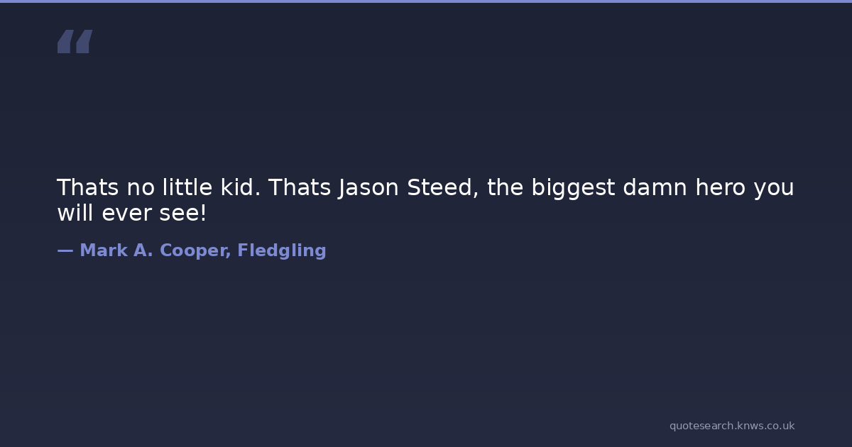 Thats no little kid. Thats Jason Steed, the biggest damn hero you will ever see! biggest damn hero heroes kid punch-line Download Image Share on X Share on Facebook Copy Link