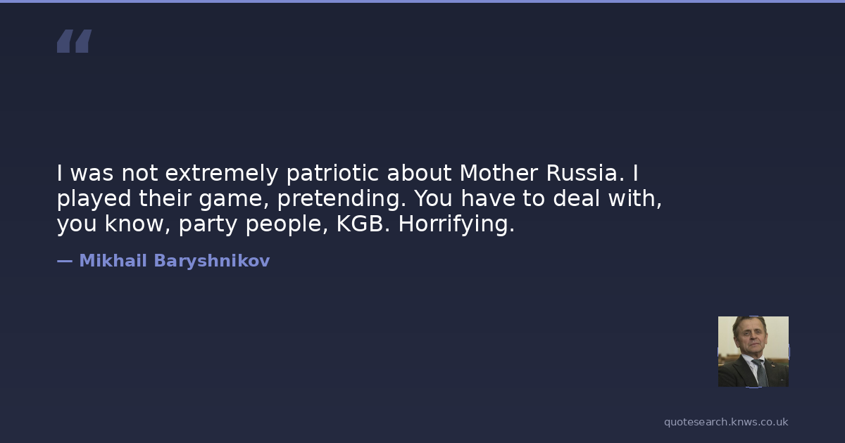 I was not extremely patriotic about Mother Russia. I played their game, pretending. You have to deal with, you know, party people, KGB. Horrifying.