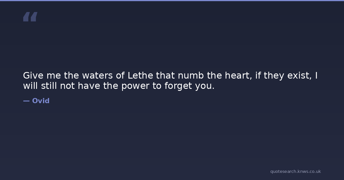 Give me the waters of Lethe that numb the heart, if they exist, I will still not have the power to forget you.