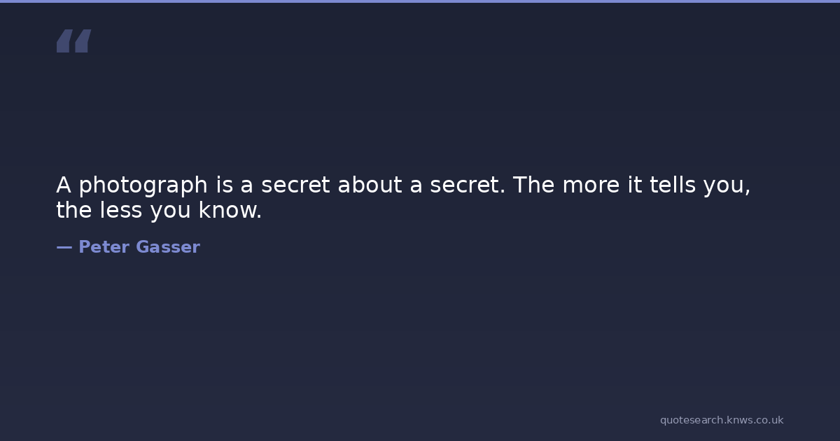 A photograph is a secret about a secret. The more it tells you, the less you know. photography Download Image Share on X Share on Facebook Copy Link