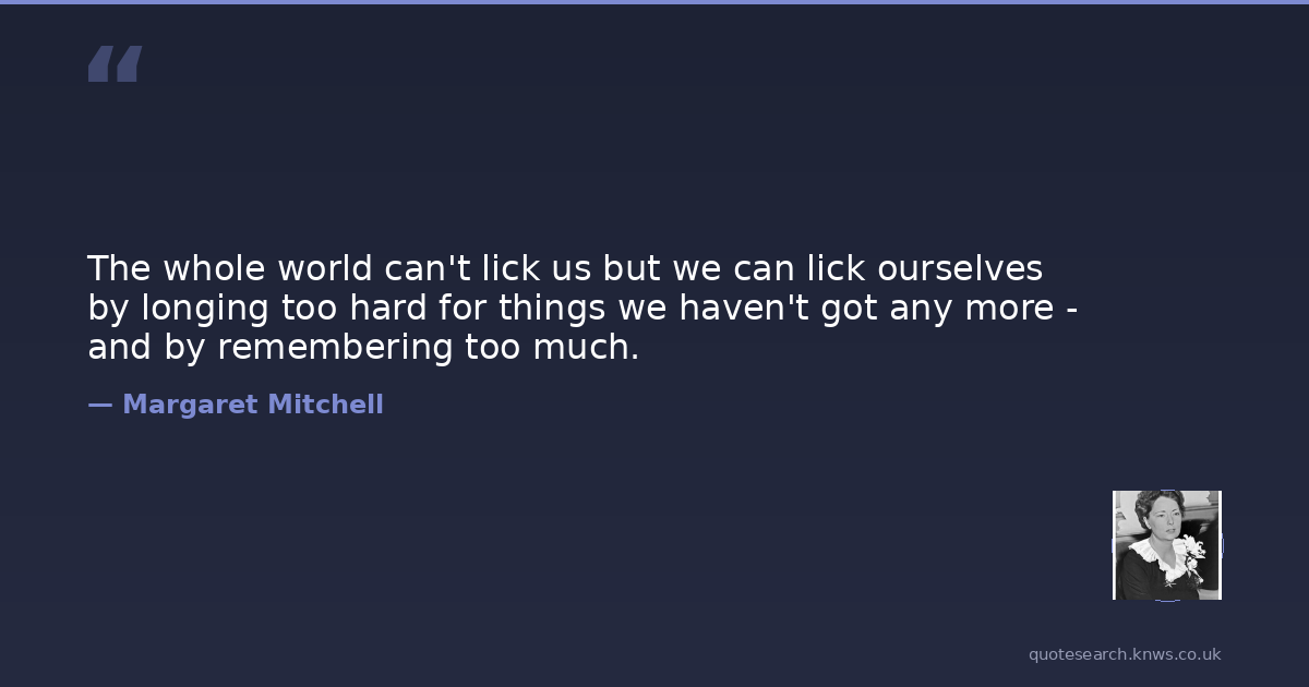 The whole world can't lick us but we can lick ourselves by longing too hard for things we haven't got any more - and by remembering too much.
