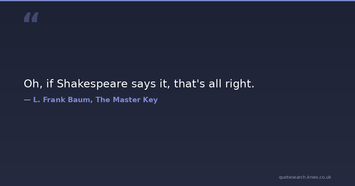Oh, if Shakespeare says it, that's all right. authority precedence shakespeare Download Image Share on X Share on Facebook Copy Link