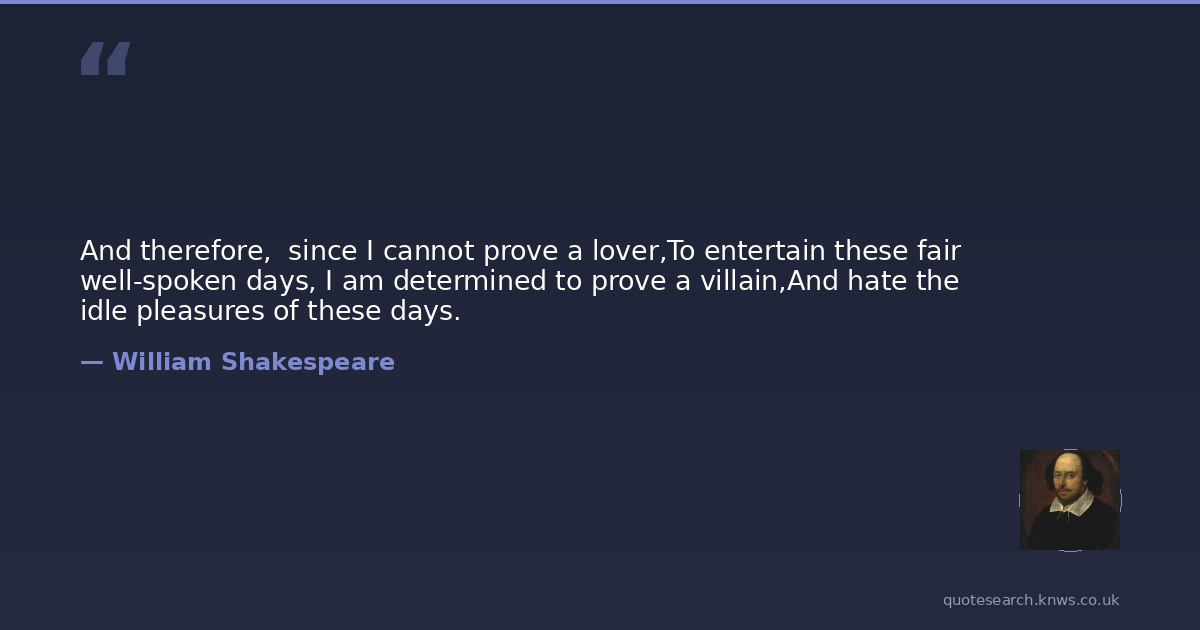 And therefore, since I cannot prove a lover,To entertain these fair well-spoken days, I am determined to prove a villain,And hate the idle pleasures of these days.