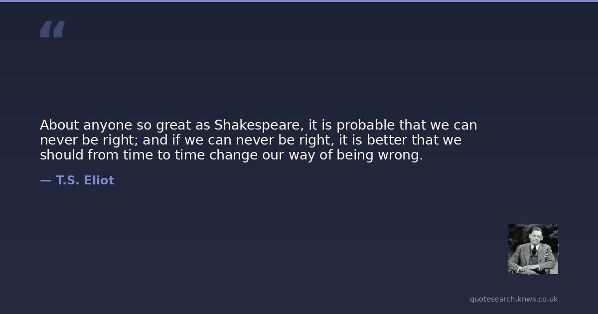 About anyone so great as Shakespeare, it is probable that we can never be right; and if we can never be right, it is better that we should from time to time change our way of being wrong.