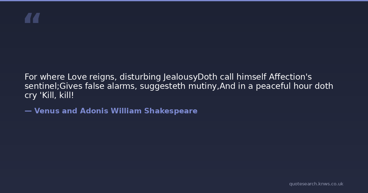 For where Love reigns, disturbing JealousyDoth call himself Affection's sentinel;Gives false alarms, suggesteth mutiny,And in a peaceful hour doth cry 'Kill, kill!
