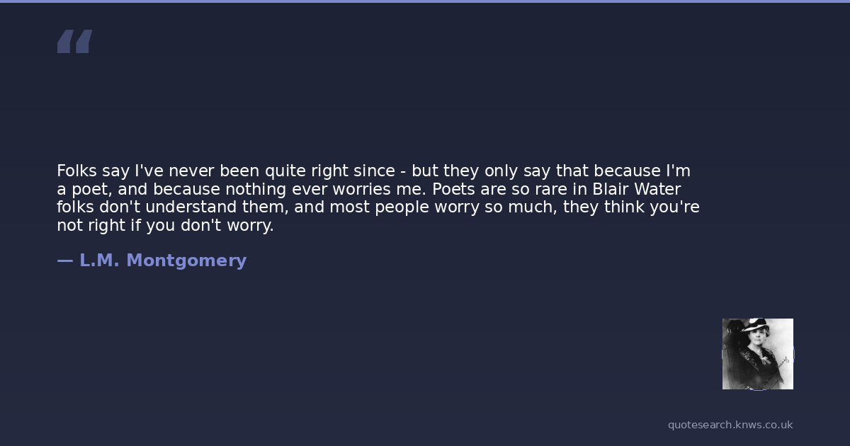 Folks say I've never been quite right since - but they only say that because I'm a poet, and because nothing ever worries me. Poets are so rare in Blair Water folks don't understand them, and most people worry so much, they think you're not right if you don't worry.