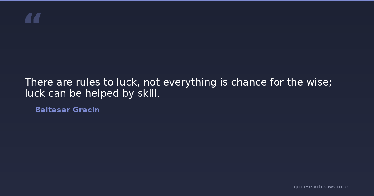 There are rules to luck, not everything is chance for the wise; luck can be helped by skill.
