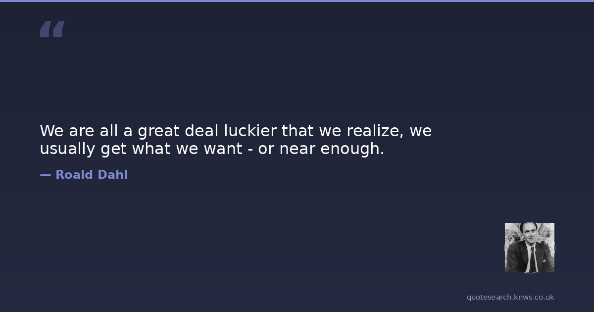 We are all a great deal luckier that we realize, we usually get what we want - or near enough.