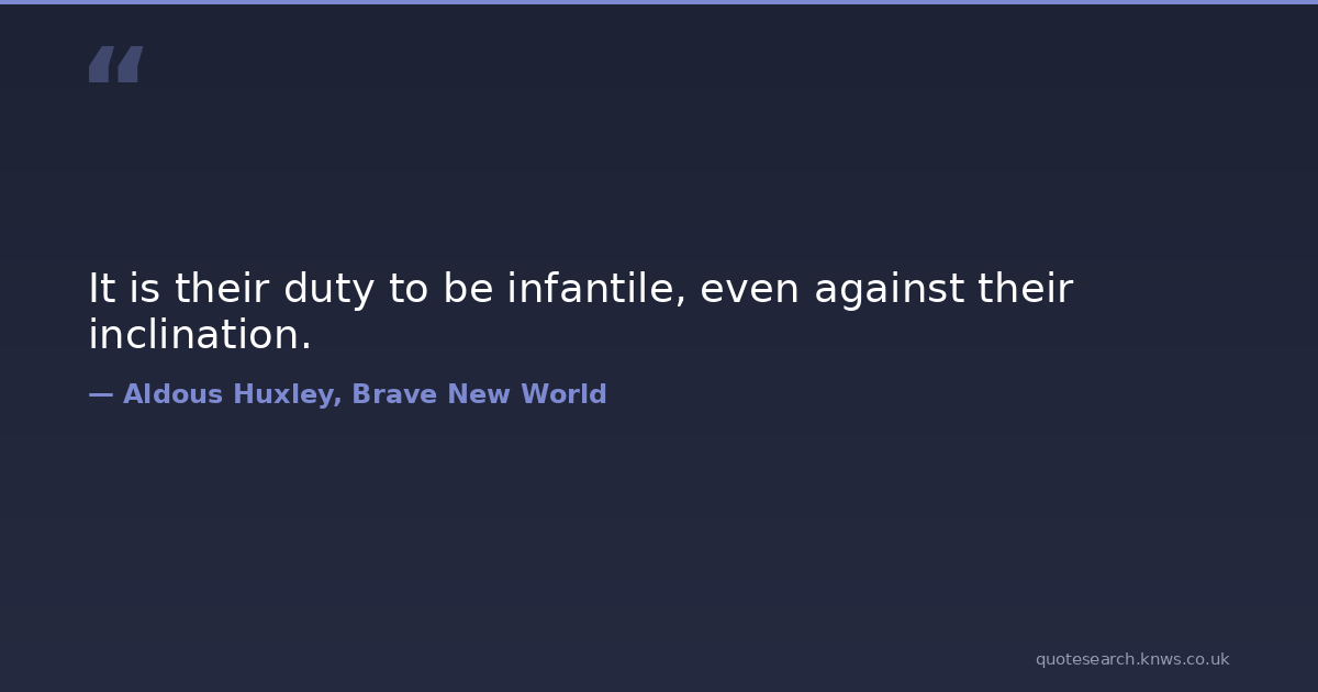 It is their duty to be infantile, even against their inclination. civilization class dystopia industrialism modernity social utopia Download Image Share on X Share on Facebook Copy Link