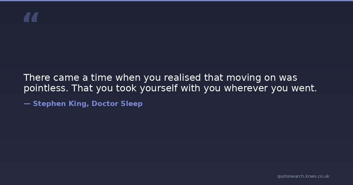 There came a time when you realised that moving on was pointless. That you took yourself with you wherever you went.