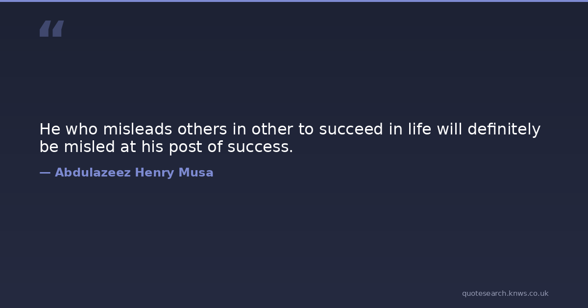 He who misleads others in other to succeed in life will definitely be misled at his post of success.