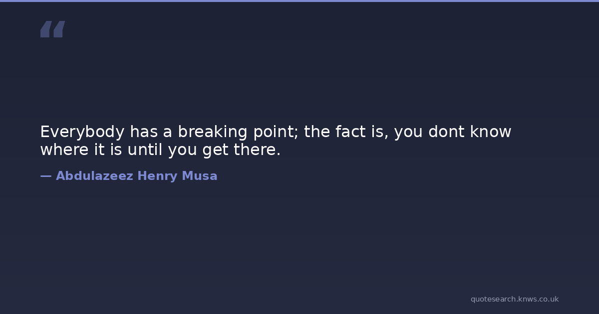 Everybody has a breaking point; the fact is, you dont know where it is until you get there.