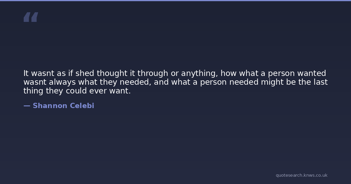 It wasnt as if shed thought it through or anything, how what a person wanted wasnt always what they needed, and what a person needed might be the last thing they could ever want.