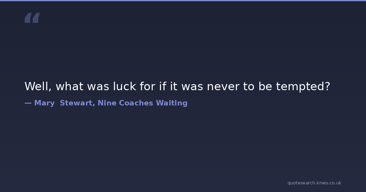 Well, what was luck for if it was never to be tempted? luck mary-stewart nine-coaches-waiting Download Image Share on X Share on Facebook Copy Link