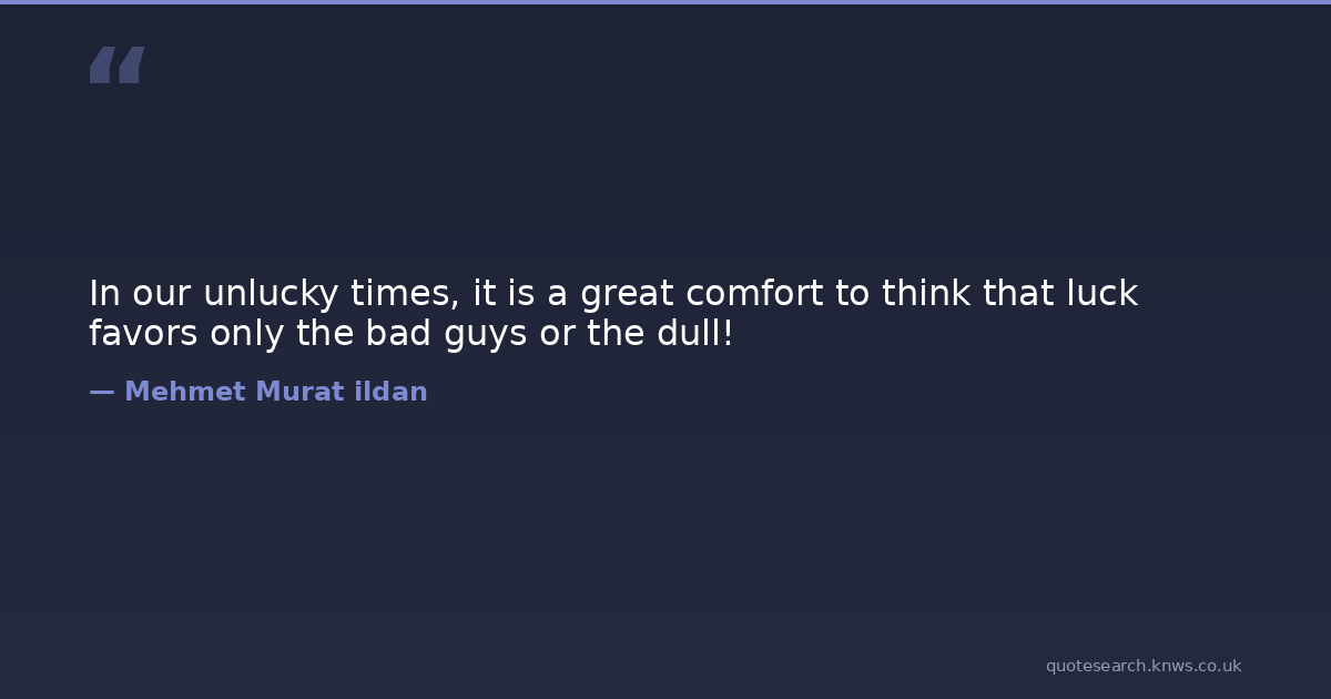 In our unlucky times, it is a great comfort to think that luck favors only the bad guys or the dull!