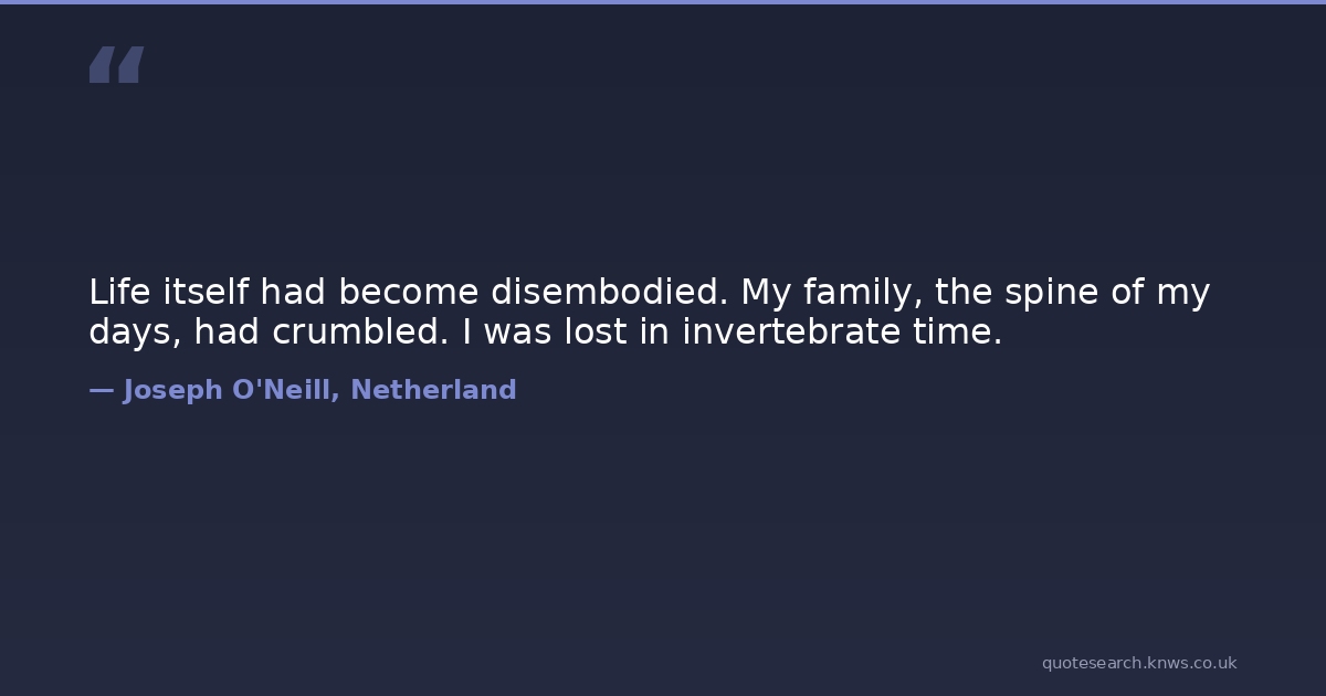 Life itself had become disembodied. My family, the spine of my days, had crumbled. I was lost in invertebrate time.