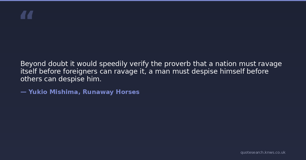 Beyond doubt it would speedily verify the proverb that a nation must ravage itself before foreigners can ravage it, a man must despise himself before others can despise him.