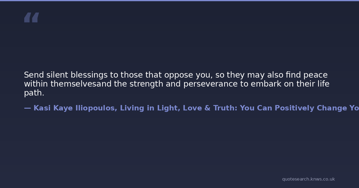 Send silent blessings to those that oppose you, so they may also find peace within themselvesand the strength and perseverance to embark on their life path.