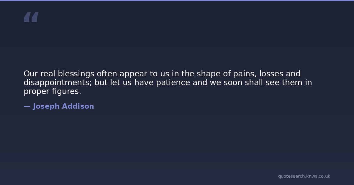 Our real blessings often appear to us in the shape of pains, losses and disappointments; but let us have patience and we soon shall see them in proper figures.