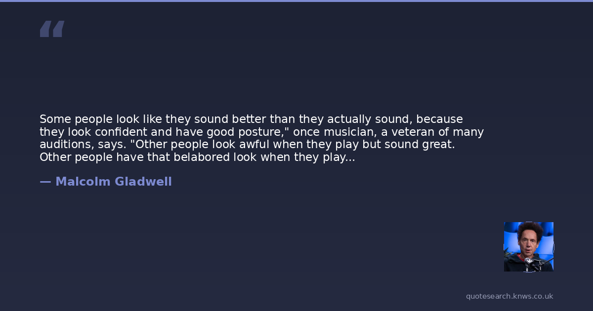 Some people look like they sound better than they actually sound, because they look confident and have good posture," once musician, a veteran of many auditions, says. "Other people look awful when they play but sound great. Other people have that belabored look when they play, but you can't hear it in the sound. There is always this dissonance between what you see and hear" (p.251).