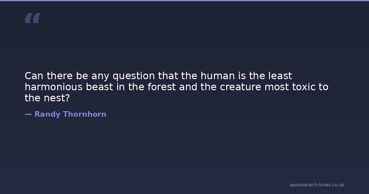 Can there be any question that the human is the least harmonious beast in the forest and the creature most toxic to the nest?