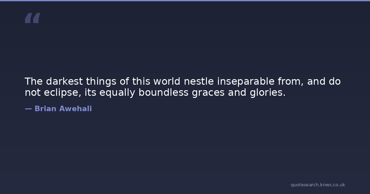 The darkest things of this world nestle inseparable from, and do not eclipse, its equally boundless graces and glories.