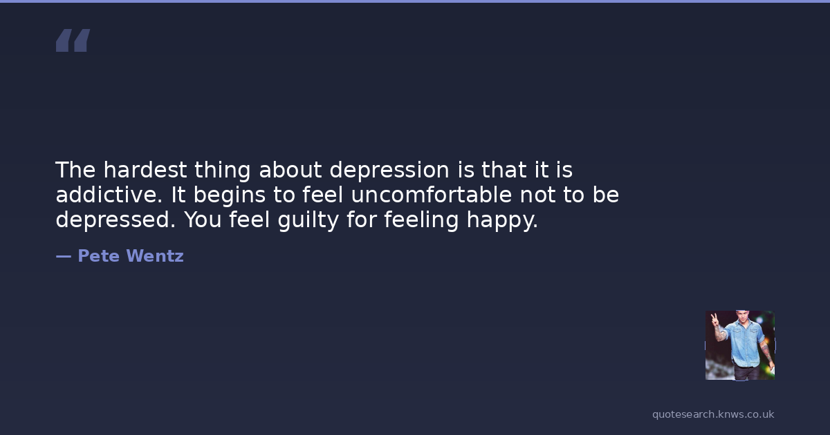 The hardest thing about depression is that it is addictive. It begins to feel uncomfortable not to be depressed. You feel guilty for feeling happy.