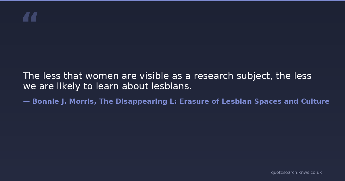 The less that women are visible as a research subject, the less we are likely to learn about lesbians. lesbian lesbian-history lgbt lgbt-history women-s-history Download Image Share on X Share on Facebook Copy Link