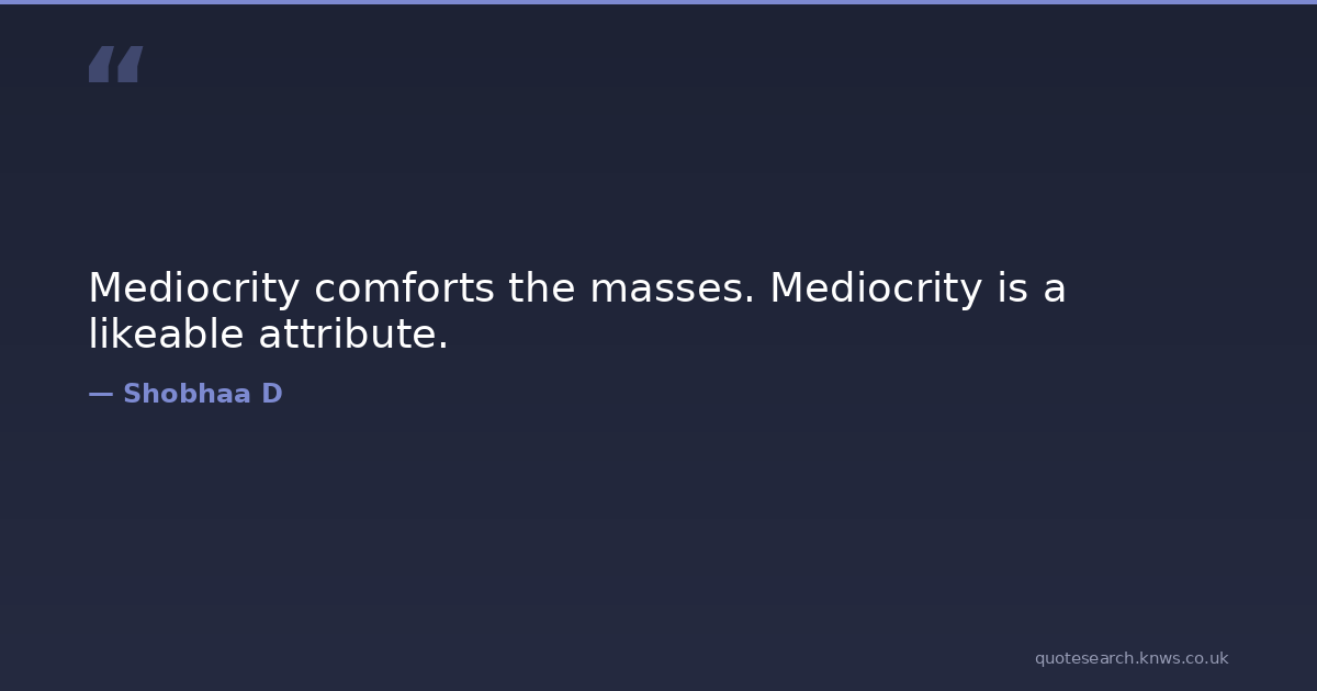 Mediocrity comforts the masses. Mediocrity is a likeable attribute. mediocrity simplicity Download Image Share on X Share on Facebook Copy Link