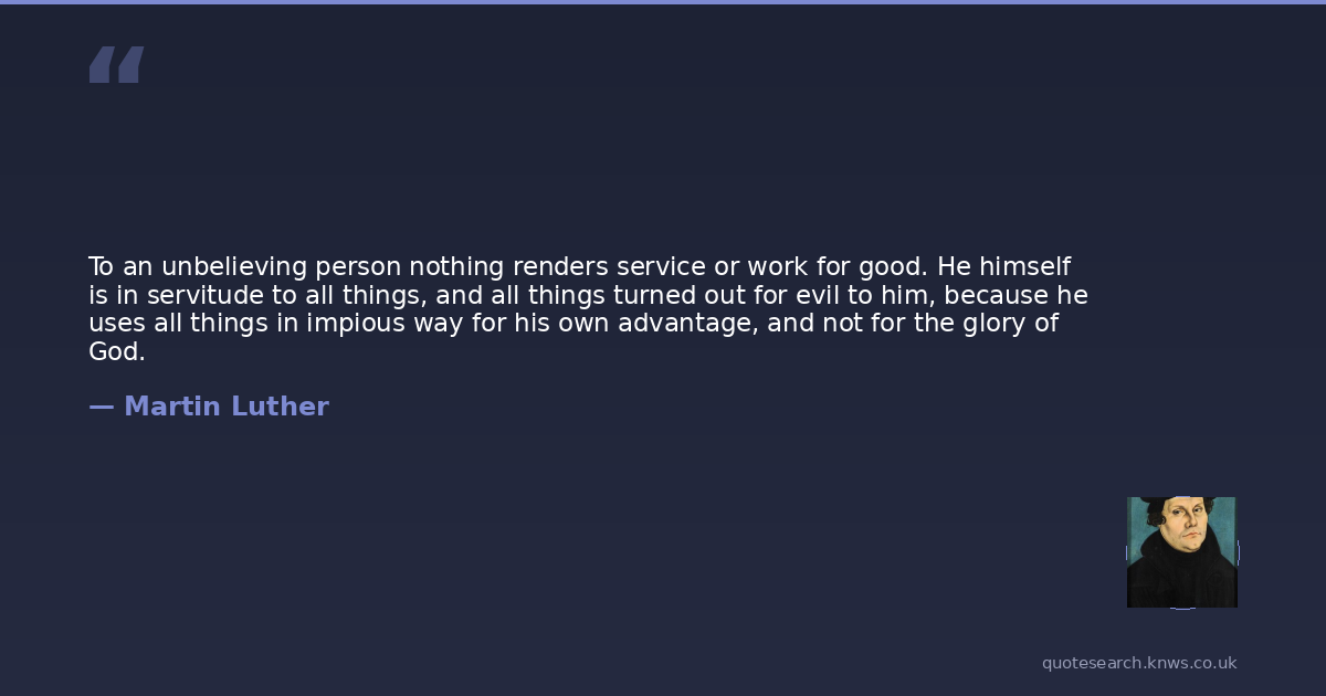 To an unbelieving person nothing renders service or work for good. He himself is in servitude to all things, and all things turned out for evil to him, because he uses all things in impious way for his own advantage, and not for the glory of God.