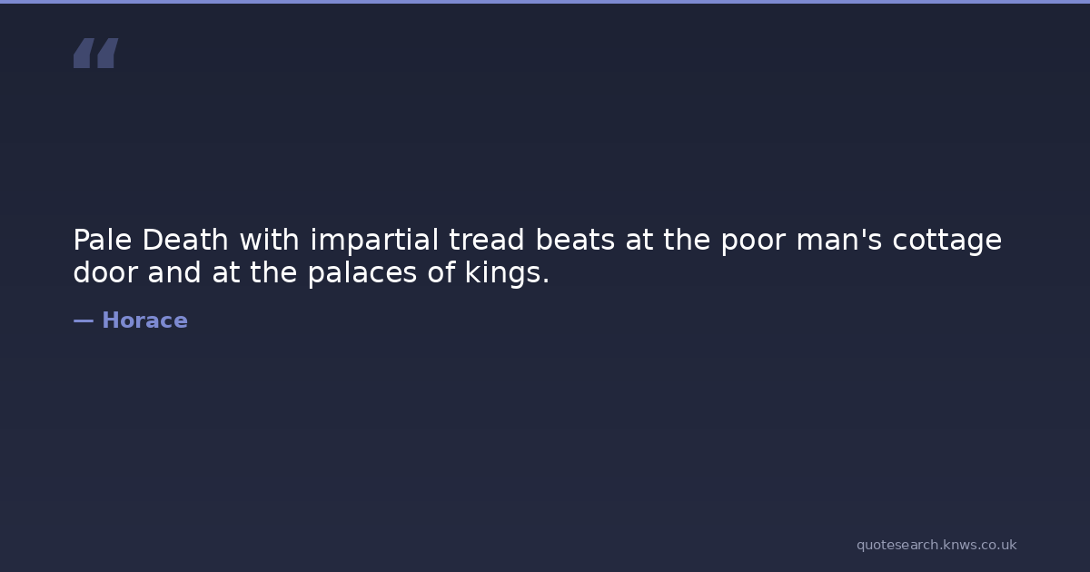 Pale Death with impartial tread beats at the poor man's cottage door and at the palaces of kings.
