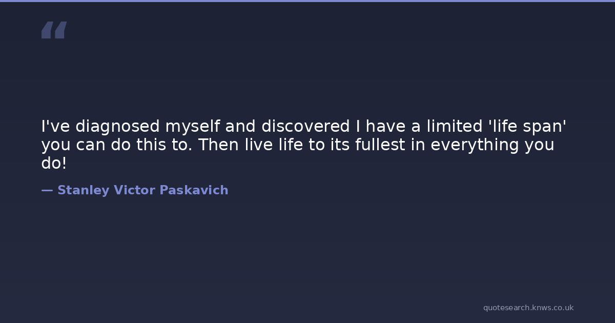I've diagnosed myself and discovered I have a limited 'life span' you can do this to. Then live life to its fullest in everything you do!