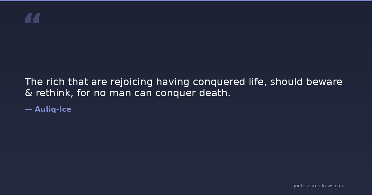 The rich that are rejoicing having conquered life, should beware & rethink, for no man can conquer death.