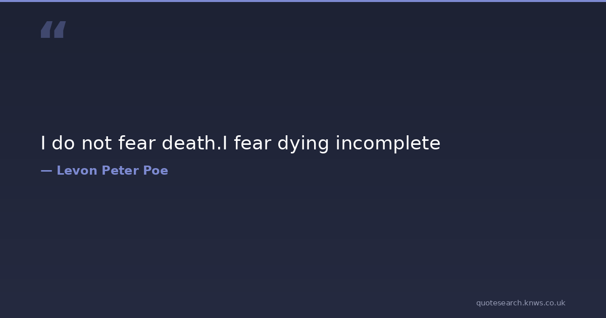 I do not fear death.I fear dying incomplete life-and-death Download Image Share on X Share on Facebook Copy Link