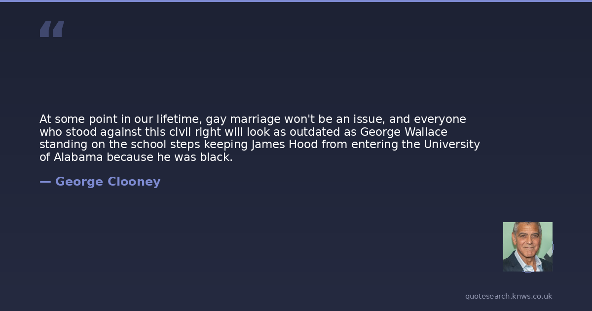 At some point in our lifetime, gay marriage won't be an issue, and everyone who stood against this civil right will look as outdated as George Wallace standing on the school steps keeping James Hood from entering the University of Alabama because he was black.