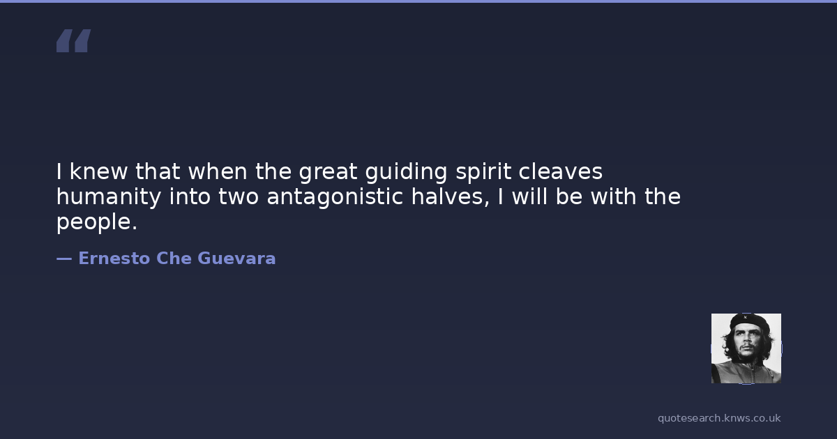 I knew that when the great guiding spirit cleaves humanity into two antagonistic halves, I will be with the people.