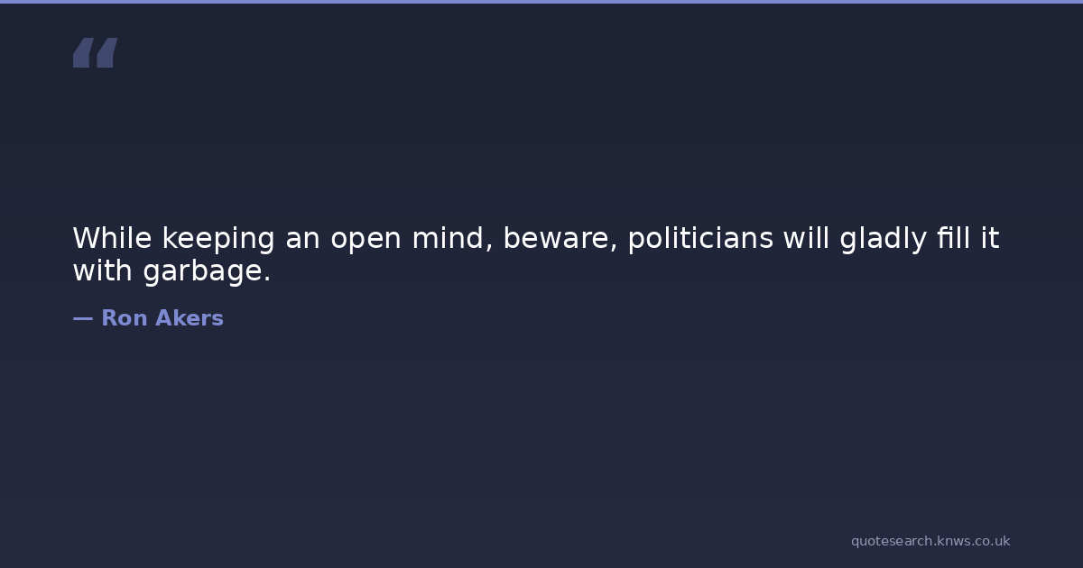 While keeping an open mind, beware, politicians will gladly fill it with garbage. political Download Image Share on X Share on Facebook Copy Link