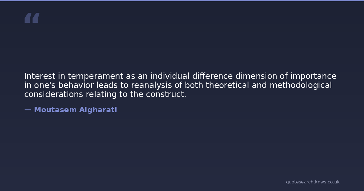 Interest in temperament as an individual difference dimension of importance in one's behavior leads to reanalysis of both theoretical and methodological considerations relating to the construct.