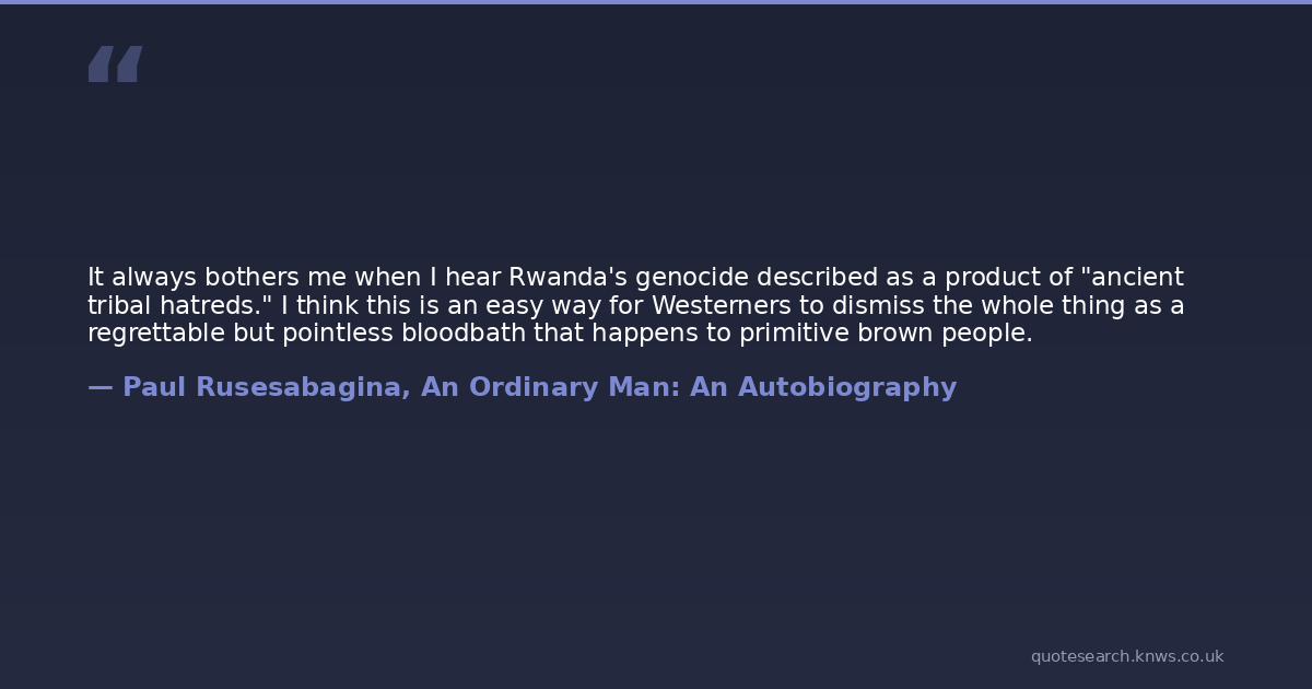 It always bothers me when I hear Rwanda's genocide described as a product of "ancient tribal hatreds." I think this is an easy way for Westerners to dismiss the whole thing as a regrettable but pointless bloodbath that happens to primitive brown people.